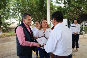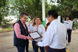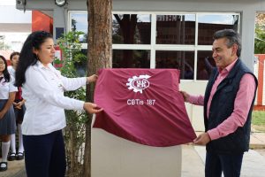 “Hablar de una obra como la que hoy estamos inaugurando, es hablar de una visión de futuro, donde no solamente estamos presenciando el beneficio para 1331 estudiantes actuales, sino para muchas generaciones venideras más”, expresó la Maestra Sandra Martínez Turiján, directora del CBTis 187, durante la inauguración del espacio multideportivo realizado por el gobierno que preside el Ing. Pepe Meza.