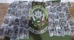 Tras llevar a cabo una inspección, los oficiales Estatales aseguraron 41 bolsas con marihuana, con un peso aproximado de 394 gramos, además de 06 artefactos de varilla corrugada, conocidas como poncha llantas.