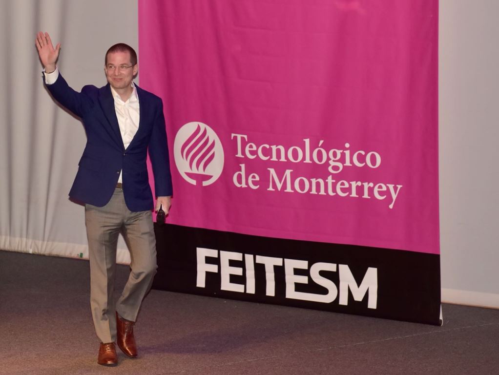 Anaya conquistó aplausos del auditorio Elizondo del ITESM, donde fue el primero de los cinco candidatos presidenciales que acudirán ante el estudiantado.