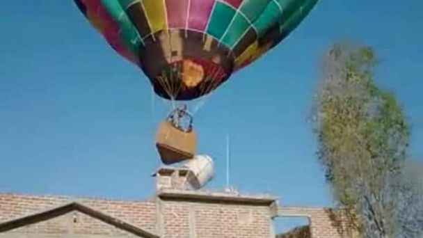 León, Gto.- Un globo aerostático se impactó en la fachada de una casa de dos pisos y derribó el tinaco en la colonia Los Castillos este sábado, en el segundo día del Festival Internacional del Globo (FIG).