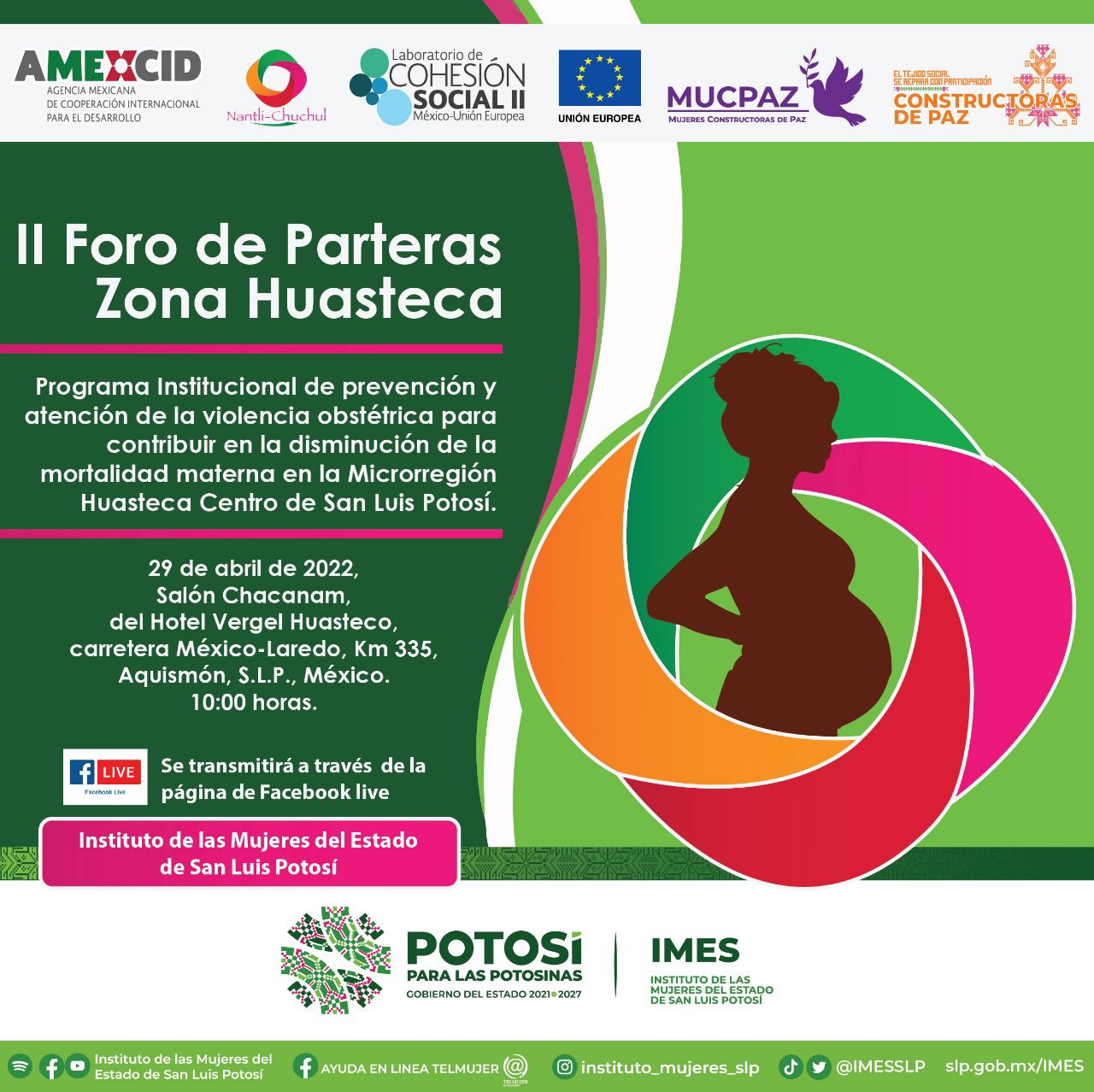 Dando seguimiento al objetivo de descentralizar, garantizar e impulsar el trabajo gubernamental a favor de todas las potosinas en edad de reproducción, el Instituto de las Mujeres en el Estado (Imes) llevará a cabo el Segundo Foro de Mujeres Parteras este viernes 29 de abril, en el municipio de Aquismón.