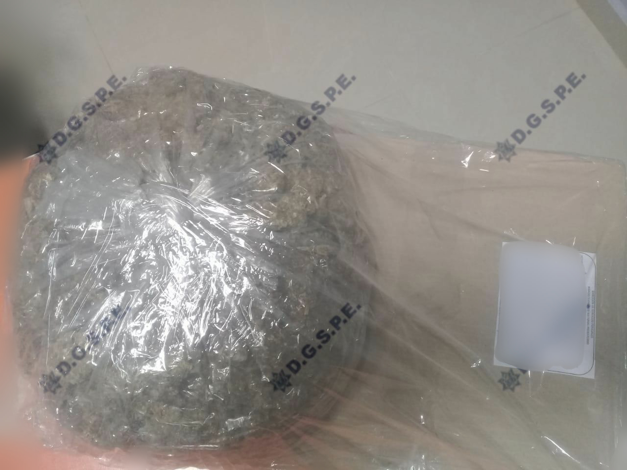 Al realizarle una inspección de seguridad, se le aseguro un paquete de una hierba verde y seca con propiedades físicas a la marihuana, que trasladaba en una mochila color azul, procediendo a la detención de quien se identificó como Humberto H.