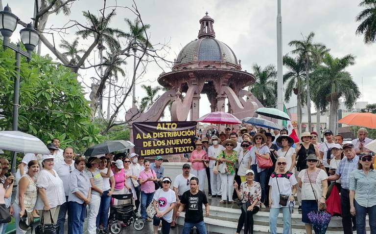 En Tampico, un grupo nutrido de personas caminaron por las principales calles del puerto hasta llegar a la plaza frente a la presidencia municipal, en donde lanzaron consignas sobre la importancia de no usar estos compendios que han sido catalogados de adoctrinamiento político de la 4T.