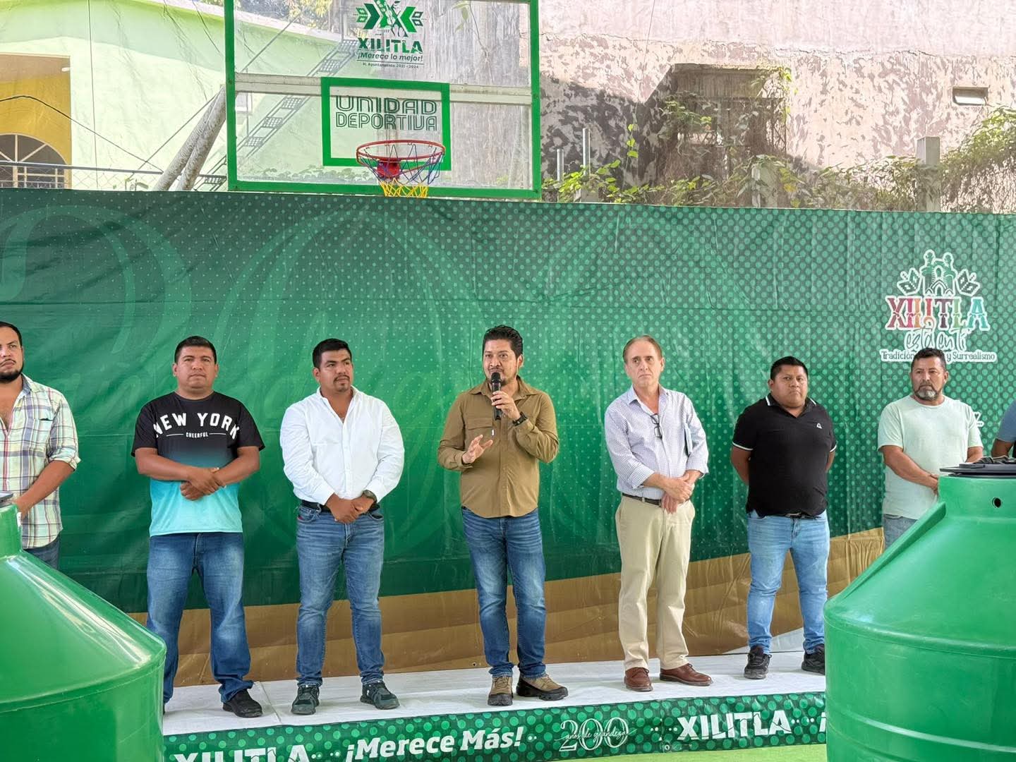 En las instalaciones de la nueva Unidad Deportiva de Xilitla, el presidente municipal Óscar Márquez encabezó la entrega de tinacos a familias de distintas comunidades del municipio, como parte del programa implementado por la Dirección de Vivienda Municipal.