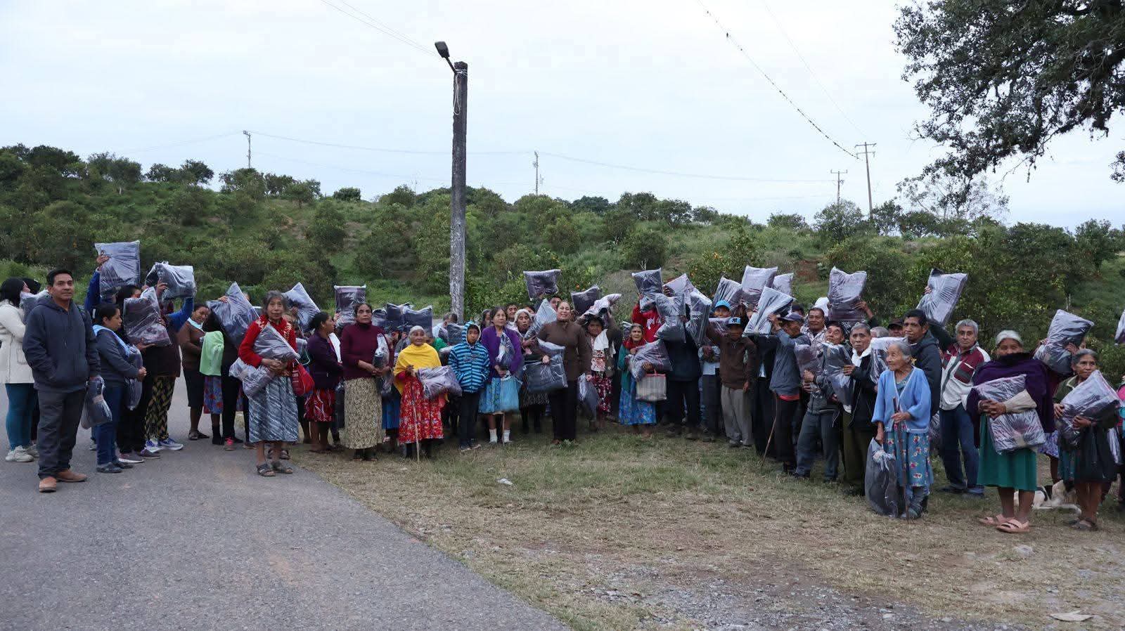 La tarde de ayer, la presidenta municipal Clara Castro acudió a la comunidad de Cuayo Cerro para hacer entrega de cobijas a las y los habitantes de esta localidad.