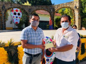 Coxcatlán, S.L.P.- En representación de la alcaldesa Ibeth Arenas Vidales, el Secretario General del Ayuntamiento: Profr. Héctor Leyva acompañado de la directora de Cultura y Turismo: Mtra. Olider Morán González entregaron los premios correspondientes al 1ro, 2do y 3er lugar del Concurso Virtual de Catrinas edición 2020, por el marco de las festividades de Xantolo o Día de Muertos.
