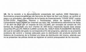 En el reporte final de la auditoría AEFPO-14-PARFIP-2020, la Ase observó la operación por ser un gasto que no correspondía al fin del origen financiero de los fondos con los que se pagó la compra, que correspondía al combate a la pandemia de Covid.