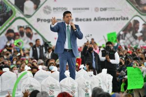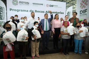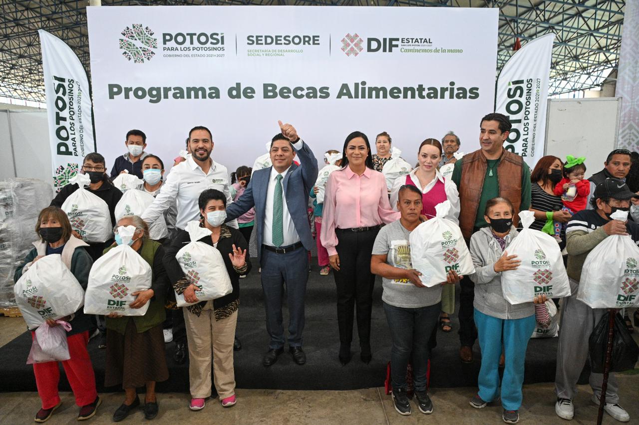 San Luis Potosí, S.L.P.- El Gobernador de San Luis Potosí, Ricardo Gallardo Cardona, refrendó su compromiso de trabajar las y los potosinos que más lo necesitan, con el arranque del programa de “Becas alimentarias 2023”, cuya meta para este año es alcanzar a las 600 mil familias beneficiarias, con el propósito de contribuir a mejorar las condiciones de igualdad de oportunidades para un desarrollo pleno de los hogares de las cuatro regiones de la entidad.