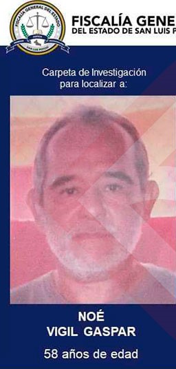 La Fiscalía General del Estado emitió una alerta de búsqueda de don Noé Vigil Gaspar, donde se solicita la colaboración de la ciudadanía en general para tratar de localizarlo a la brevedad posible, pues la familia se encuentra desesperada y preocupada al no tener noticias de su paradero.