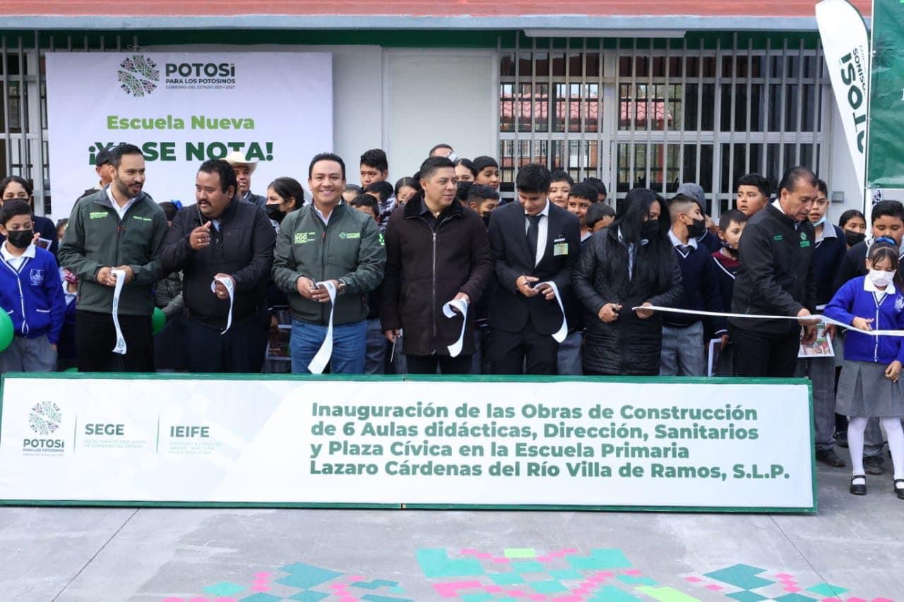 Villa de Ramos, San Luis Potosí.- El Gobierno del cambio, está decidido en dar a las y los alumnos, así como a los docentes de todo el Estado, espacios dignos para que en educación nadie se quede atrás, afirmó el Gobernador de San Luis potosí, Ricardo Gallardo Cardona, al inaugurar la construcción de seis nuevas aulas, dirección, sanitarios y plaza cívica de la escuela primaria “Lázaro Cárdenas del Río” en la comunidad de Los Hernández, con una inversión de 11.3 millones de pesos.