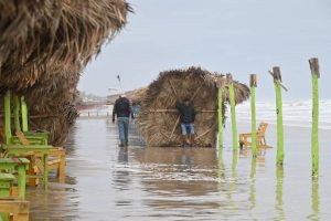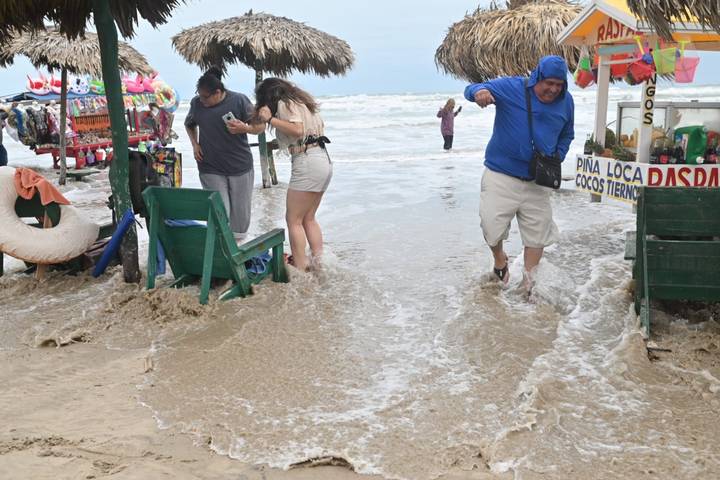 De igual forma comentó que el agua llega hasta la segunda hilera de Las palapas y los trabajadores de esta área de inmediato están desmontando varias de estas para evitar que presenten daños por el fuerte viento que está afectando la zona sur del Estado de Tamaulipas desde la tarde de este viernes.