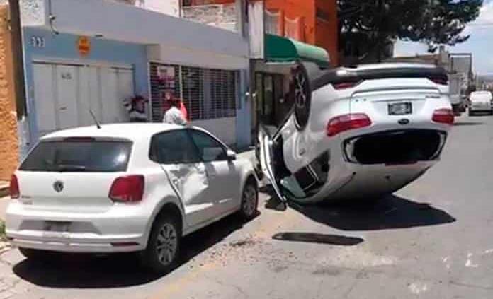El accidente se suscitó al mediodía de ayer, cuando los conductores de la camioneta Kia de color blanco y el de la Honda de color vino impactaron entre sí, para posteriormente la primera de las unidades perder el control y chocar con un Volkswagen Polo de color blanco, que se encontraba estacionado, para finalmente volcar y quedar con los neumáticos hacia arriba.