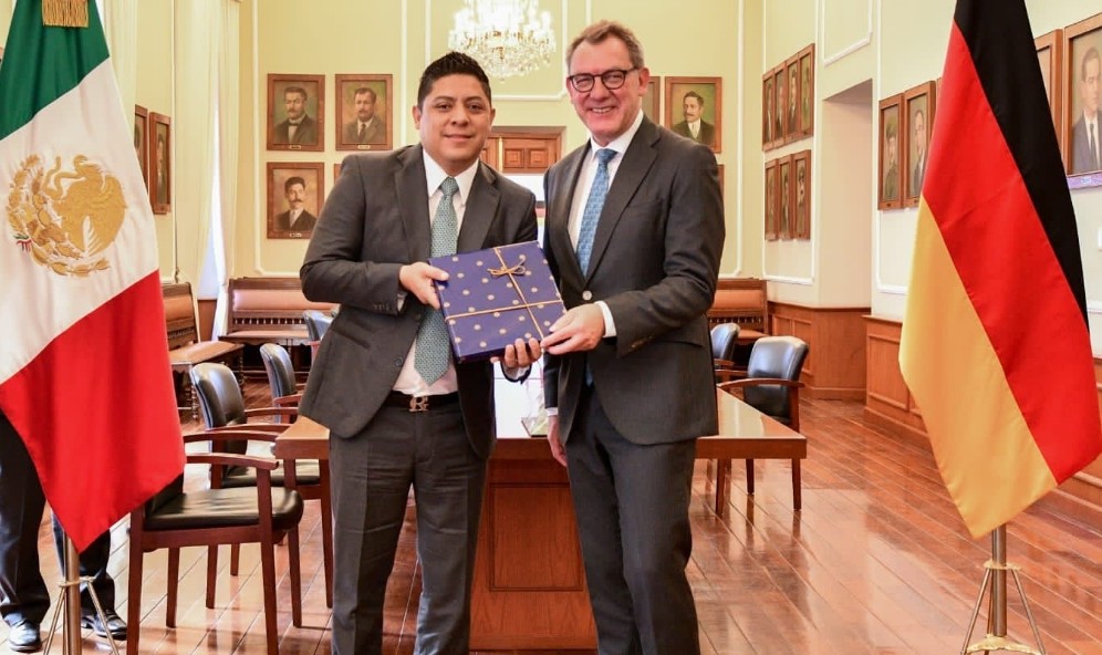 En Palacio de Gobierno, sostienen encuentro Ricardo Gallardo y Peter Tempel, Embajador de Alemania en México.