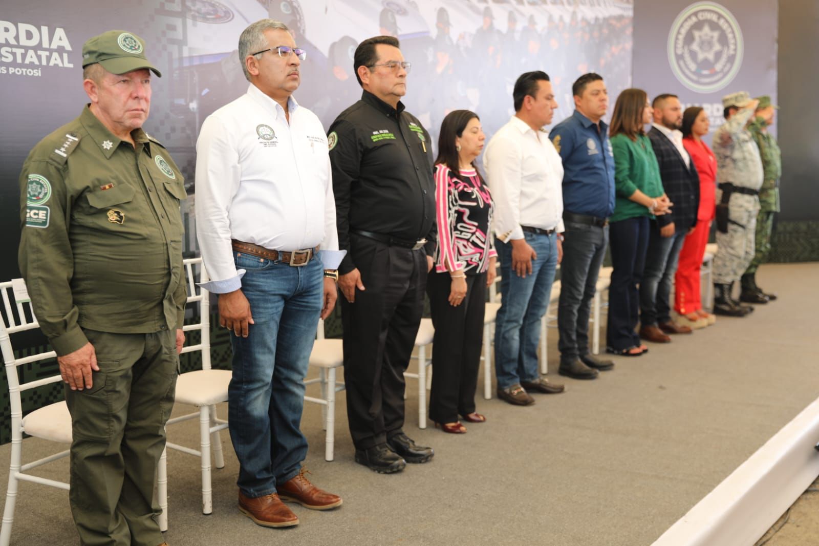 Por su parte en su intervención, el mandatario potosino, Ricardo Gallardo Gallardo, enumeró los logros de la Guardia Civil Estatal al cumplir un año de su creación tras décadas de olvido y omisiones de ahora de forma gradual pero contundente se dan los pasos correctos para generar mejores condiciones de orden y paz públicas en las cuatro regiones del territorio potosino, “hoy San Luis Potosí es más seguro que en el virreinato de la herencia maldita, se diga lo que se diga”.