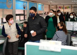 El Mandatario Estatal pudo constatar que se aplican protocolos al ingreso y durante la estancia para las y los empleados, y las y los usuarios que acuden a realizar algún trámite, entre los que se encuentra la toma de temperatura a la entrada, dispensadores de gel antibacterial distribuidos en los edificios; tapetes sanitizantes, así como el uso obligatorio de cubrebocas.