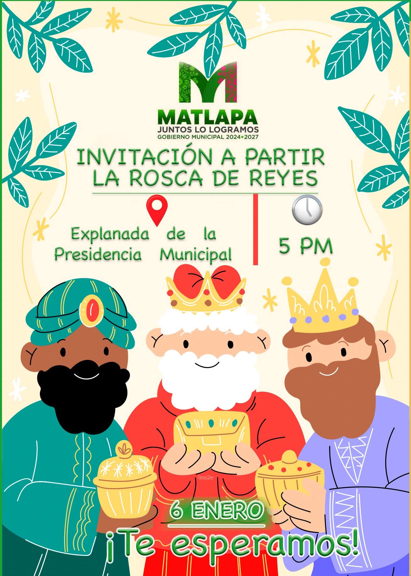 El H. Ayuntamiento de Matlapa, que encabeza la presidenta municipal Ing. Marichuy, invita a la ciudadanía a participar en la tradicional partida de Rosca de Reyes, que se llevará a cabo este martes 6 de enero en la explanada de la Presidencia Municipal.