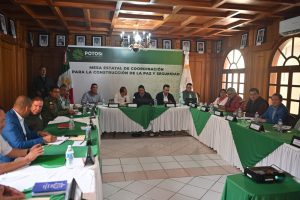 Ciudad Fernández, San Luis Potosí.- Con la propuesta de generar una estrategia interinstitucional de mayor control y efectividad en el combate de la incidencia delictiva en la región Media, el Gobernador de San Luis Potosí Ricardo Gallardo Cardona, encabezó la Mesa de Coordinación para la Construcción de la Paz en el municipio de Ciudad Fernández, en compañía de las y los representantes de los tres órdenes de Gobierno.