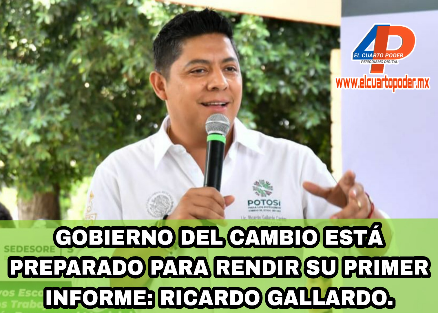 El Gobernador de San Luis Potosí, Ricardo Gallardo Cardona, afirmó que está todo preparado para rendir a las y los potosinos su Primer Informe de Gobierno el próximo lunes 26 de septiembre en el Teatro de la Ciudad del Parque Tangamanga I. La transformación de la policía estatal, más y mejores programas sociales y obras de infraestructura en todo el Estado, son algunas de las acciones que destacarán.