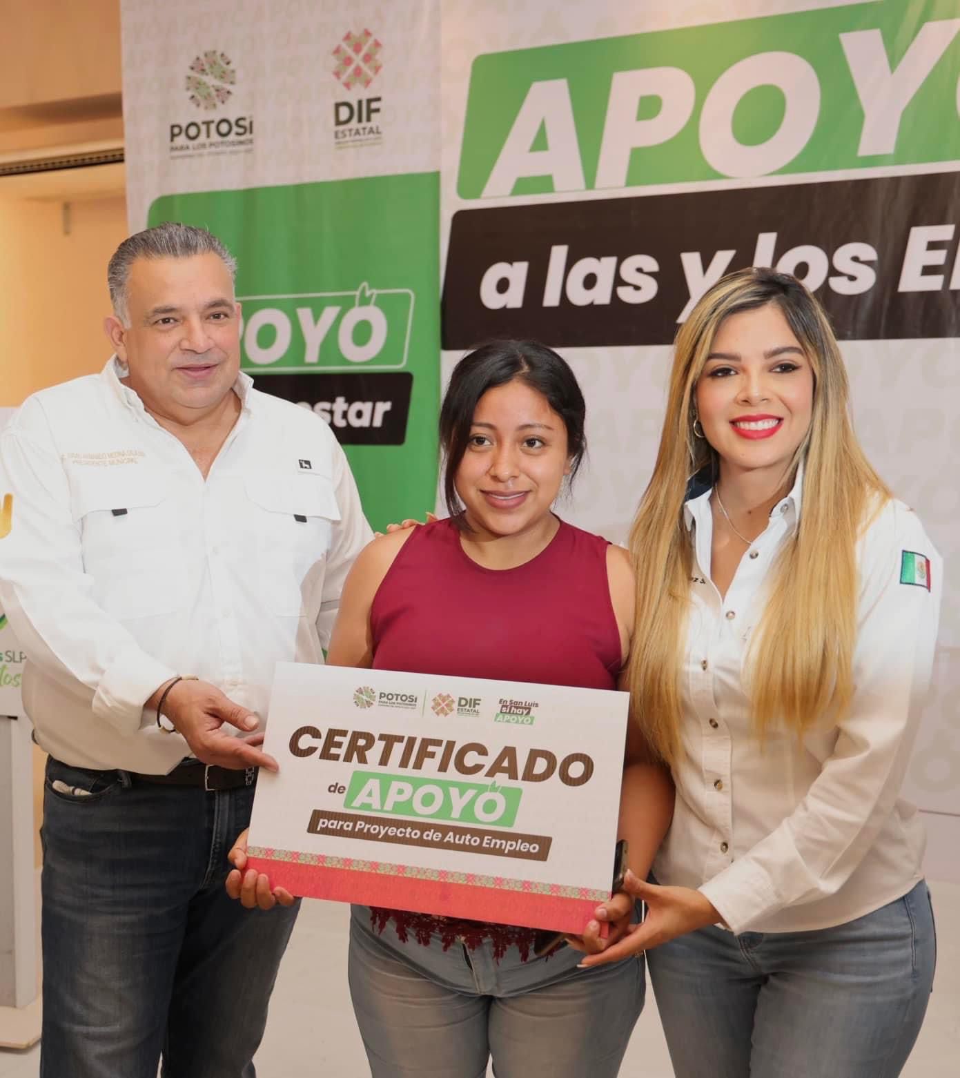 El Sistema Estatal para el Desarrollo Integral de la Familia (DIF) y la Secretaría del Trabajo y Previsión Social (STPS), entregaron en Ciudad Valles, certificados del programa “Fomento al Autoempleo” que brinda apoyo a las familias emprendedoras, con maquinaria y herramientas para que establezcan sus propias fuentes de ingreso.