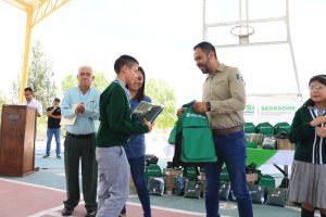 • Alumnas y alumnos de primaria y secundaria recibieron útiles, zapatos y uniformes para el ciclo escolar que recién comienza, con lo que se beneficia la economía familiar