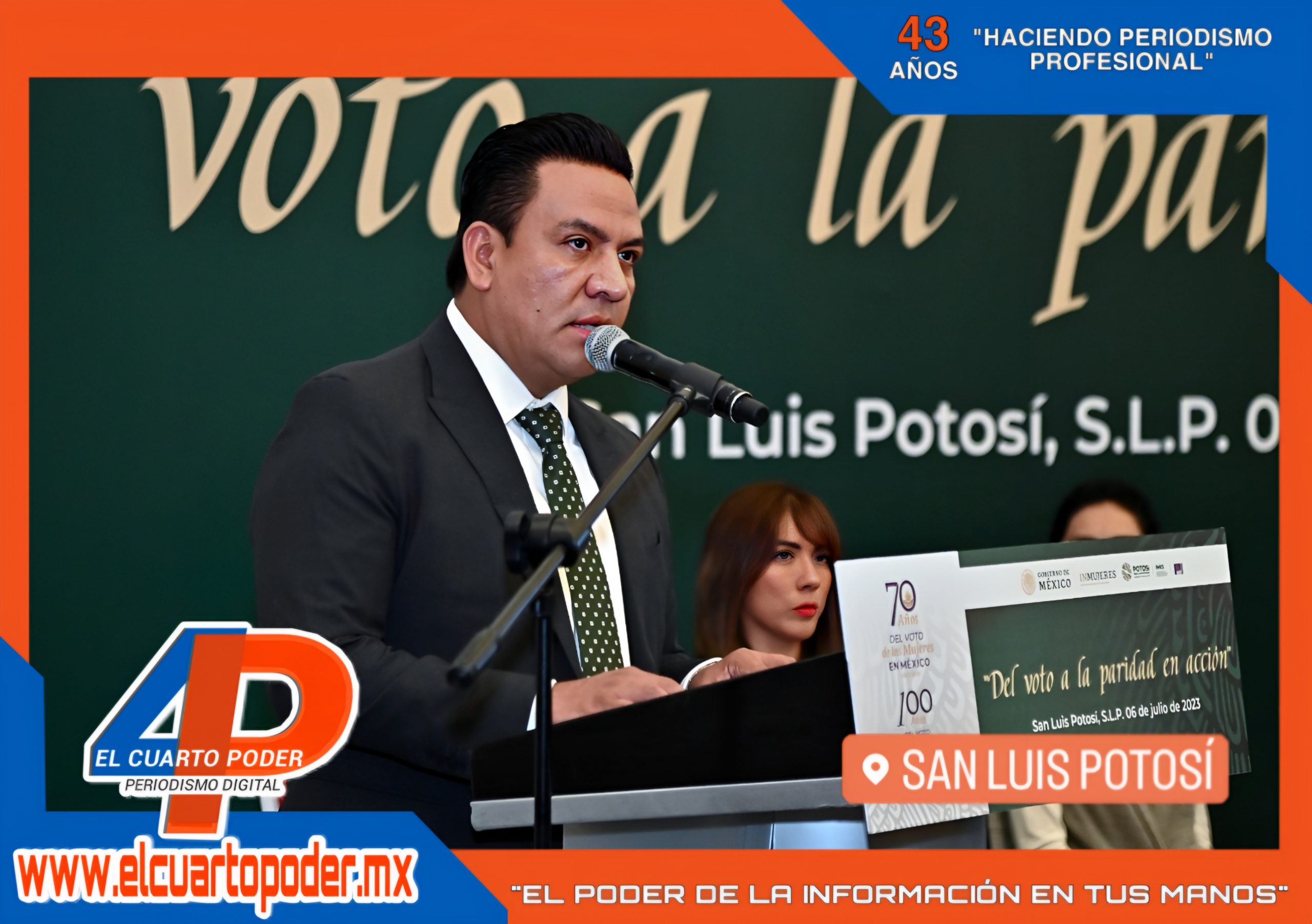 A nombre del Gobernador Ricardo Gallardo Cardona, el secretario general del Gobierno, J. Guadalupe Torres Sánchez, reconoció a aquellas mujeres que se encuentran en puestos de elección de representación, por el trabajo que han realizado en favor del ejercicio efectivo de los derechos políticos de las mujeres y la gran lucha que han recorrido para lograr la paridad de género.
