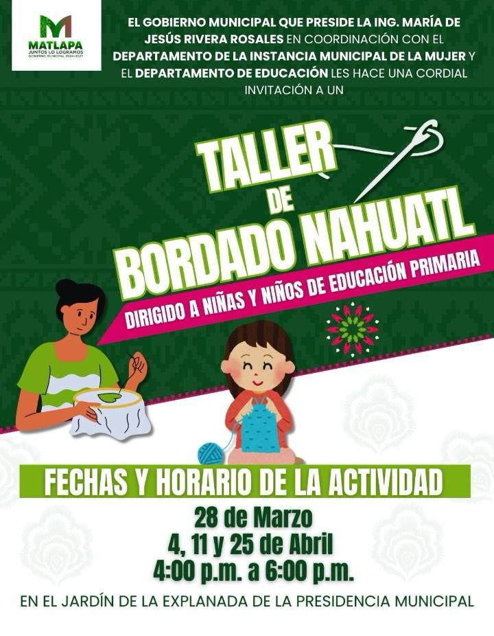 GOBIERNO MUNICIPAL DE MATLAPA INVITA AL TALLER INFANTIL DE BORDADO NAHUATL.