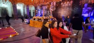 Durante todo el día, pero sobretodo ya entrada la tarde-noche, filas de gente esperaban para ingresar a la casa de las y los potosinos para fotografiarse con el altar que ocupa el patio central del recinto.