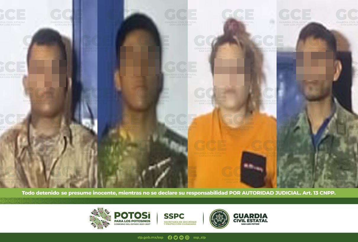 En este hecho fueron detenidos Juan de 22 años de edad, originario de Matamoros Tamaulipas; Alexis de 23 años, de Zamora, Michoacán; Roberto de 30 años, de Morelia, Michoacán y Jazmín de 38 años, originaria de San Nicolás de los Garza, Nuevo León.