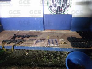 Ciudad Valles, S.L.P.- La Guardia Civil Estatal dio un nuevo golpe a la delincuencia organizada en el territorio potosino, gracias a las estrategias tácticas para augurar la paz y tranquilidad social que se disponen en la región Huasteca, donde elementos de la Guardia Civil Estatal (GCE) desarticularon una presunta banda generadora de violencia en esta zona, quienes supuestamente se dedican a la comisión de diferentes actos que perturban la paz de la ciudadanía. Al momento de su detención se les aseguró diverso armamento, poncha llantas y droga.