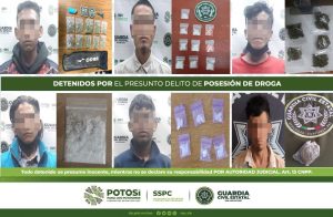 San Luis Potosí, S.L.P.- Como resultado de los operativos policiales implementados para preservar la paz en las cuatro regiones del Estado, elementos de la Guardia Civil Estatal detuvieron a 11 personas en diferentes acciones, por el presunto delito de posesión de droga.