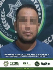 Axtla de Terrazas, S.L.P.- En el marco de los operativos de prevención y seguridad implementados en el Barrio La Libertad, agentes de la Guardia Civil Estatal (GCE), detuvieron a un hombre por presuntos delitos contra la seguridad de tránsito, luego de ser sorprendido conduciendo un vehículo bajo los influjos del alcohol.