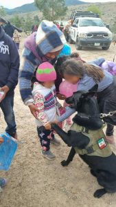 En vísperas de la navidad, niñas y niños de Mexquitic de Carmona vivieron momentos de ilusión, al recibir un juguete y dulces gracias a la solidaridad de las y los integrantes de la Guardia Civil Estatal (GCE), acciones organizadas por el departamento de Gabinete Médico, Agrupamiento K9 y la Unidad de Prevención del Delito.