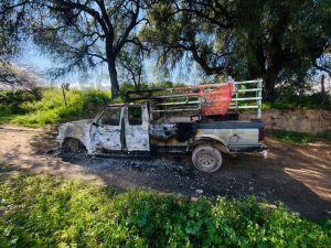 En el municipio de en el municipio de Soledad de Graciano Sánchez, se aseguraron dos automotores; el primero de ellos sobre el camino de terracería que conduce al fraccionamiento Mar de Plata; ahí, se ubicó calcinada una camioneta Ford, tipo F-50, color azul oscuro, modelo 1989, reportada como robada el 10 de octubre de 2022, en Periférico Norte. En Camino a San José del Barro, a inmediaciones de las vías México-Laredo en el fraccionamiento Rinconada del Parque; los oficiales de la GCE localizaron un Chevrolet, línea Chevy Monza, modelo 2003, color plata, contaba con reporte de robo el día 10 de octubre de 2022, en la colonia Fresnos.