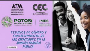 El Instituto de las Mujeres del Estado (Imes), lleva a cabo el diplomado virtual “Estudio de Género y Fortalecimiento de las Capacidades en la Administración Pública”, en colaboración con la Coordinación de Educación Continua de la Universidad Autónoma Metropolitana (UAM), Unidad Xochimilco, y con la participación de más de 105 personas.