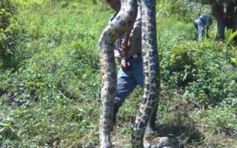 La boa intentó dañar a un campesino, quien solicitó el apoyo de sus compañeros, hasta que lograron darle muerte.