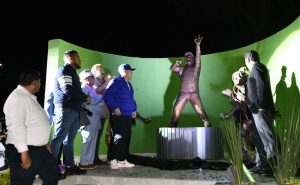 Vecinos del barrio y seguidores del Sonido Kiss, se dieron cita en la plaza principal del emblemático barrio para debelar la estatua en su honor.