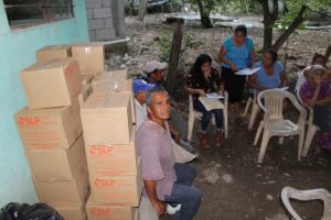 En representación de la Presidenta Cira Nely Hervert Camargo la Ing. Ivonne Lizeth Gómez Ramos Secretaria General se dispuso a realizar la entrega del apoyo enviado para mitigar los efectos económicos negativos que han dejado los últimos meses.