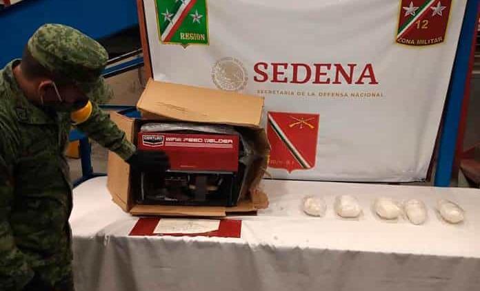 La Secretaría de la Defensa Nacional, a través de la Décimo Segunda Zona Militar informó que personal militar asignado al Aeropuerto Internacional aseguró la droga en el área de paquetería.