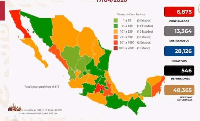 INCREMENTA A 6 MIL 875 LOS CASOS Y 546 FALLECIDOS POR CORONAVIRUS EN MÉXICO