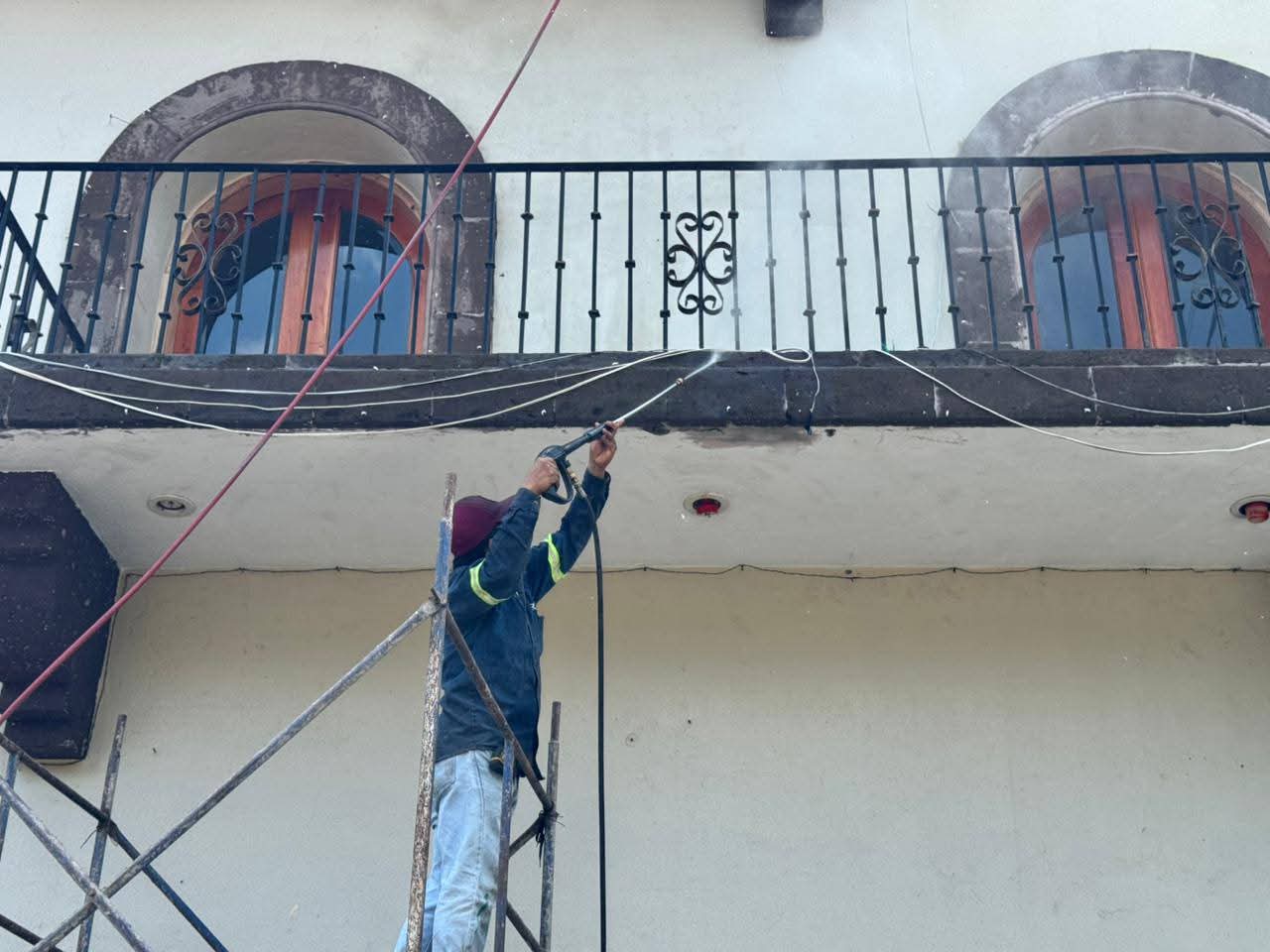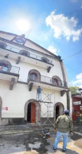Las acciones incluyen limpieza y tratamiento de la cantera, impermeabilización de la azotea, pintura en la fachada, rehabilitación de herrería, así como mejoras en la banqueta frontal e iluminación.