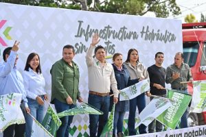 En Venado, para asegurar un suministro eficiente y duradero para los próximos 50 años, el Mandatario Estatal dio el banderazo al proyecto de sectorización de la red de distribución de agua potable en la cabecera municipal, que modernizará el sistema de abasto mediante la instalación de dos tanques elevados con capacidad de 100 y 20 metros cúbicos, nuevas líneas de conducción y tomas domiciliarias para beneficio de más de tres mil hogares.