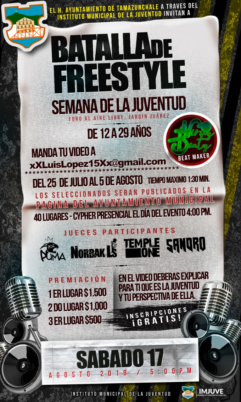 IMJUVE DE TAMAZUNCHALE INVITA A PARTICIPAR EN LA BATALLA DE FREESTYLE..