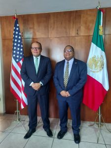 Para cumplir las indicaciones del Gobernador del Estado Ricardo Gallardo Cardona, el director del Instituto de Migración y Enlace Internacional (IMEI), Luis Enrique Hernández Segura, recibió y dialogó con el Cónsul General de Estados Unidos en Monterrey, Roger C. Rigaud, para poder definir políticas bilaterales y brindar apoyo, así como asesoría a las y los potosinos que por diversas razones buscan viajar al país vecino.