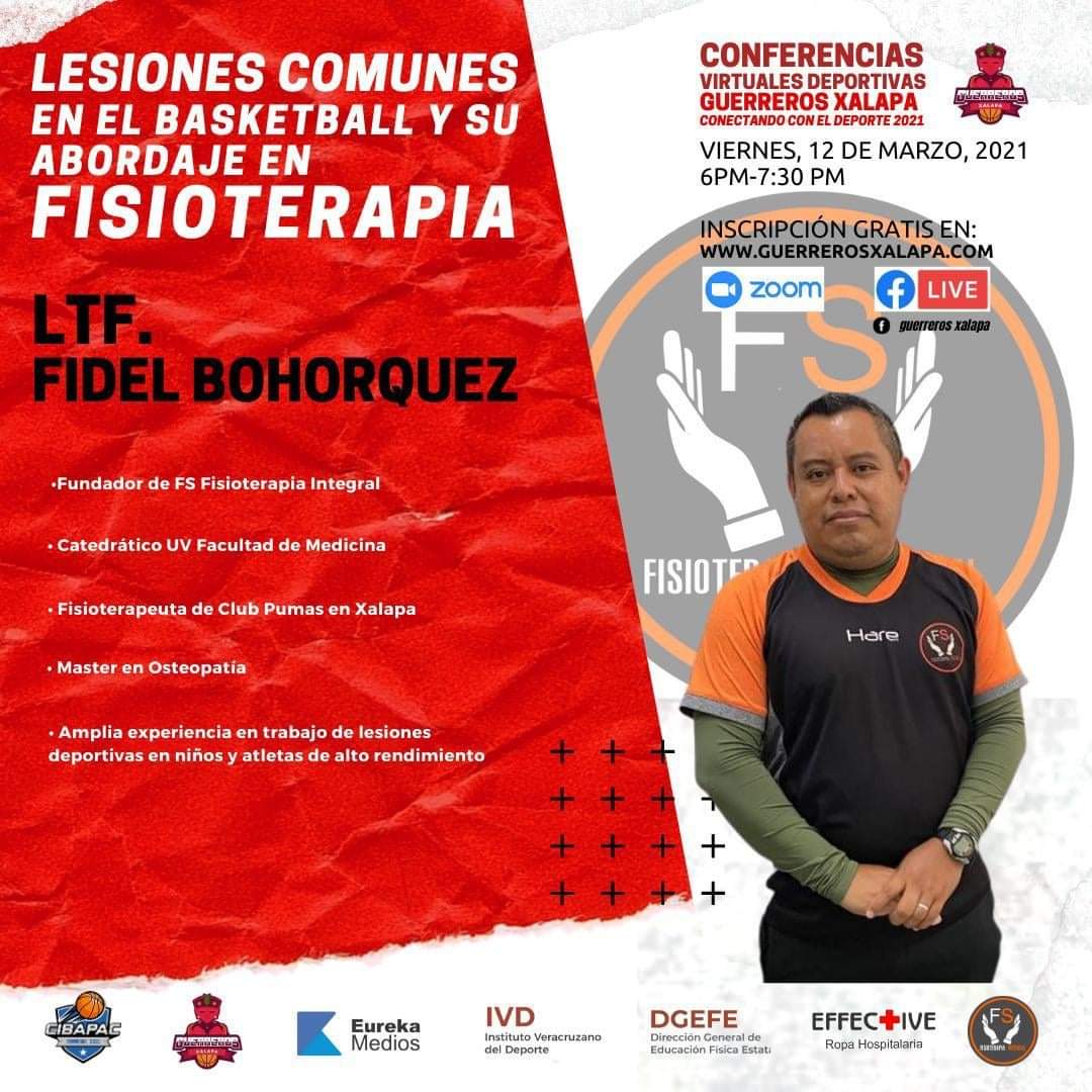 La conferencia la ofrece el Club de Basquetbol Guerreros de Xalapa y se denomina: LESIONES COMUNES EN EL BÁSQUETBOL Y SU ABORDAJE EN FISIOTERAPIA