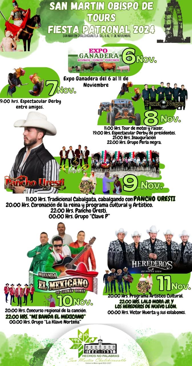 El H. Ayuntamiento de Tamazunchale, presidido por el Lic. Luis Fernando Herbert Orta, hace una cordial invitación a toda la comunidad para asistir a las Fiestas Patronales en honor a San Martín Obispo de Tours en su edición 2024.