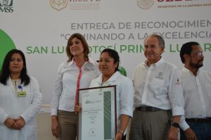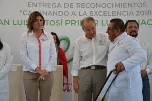 En su mensaje, el Gobernador Carreras, aplaudió el gran trabajo que ha desempeñado el personal de salud involucrado en los 31 programas en salud pública, permitiendo consolidar a San Luis Potosí como los mejores sistemas de salud en el país, y siendo el primer estado en repetir consecutivamente con este galardón en los indicadores “Caminando a la Excelencia”.