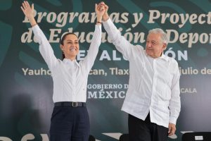 En la Evaluación de Programas y Proyectos de Educación y Deporte, realizada en Tlaxcala, Claudia Sheinbaum también reconoció el trabajo de Lorena Cuéllar como gobernadora del estado.