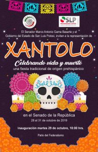 “Acordamos con el gobernador del estado, Lic. Juan Manuel Carreras, montar en el Patio del Federalismo del Senado, una representación del “Xantolo” con un altar de muertos tradicional de nuestra huasteca, con sus arcos, flores de cempasúchil, pan de muerto, comida típica; danzas de huehues con todos sus personajes, una muestra gastronómica, así como exposición de mascaras y artesanías”, informó Gama Basarte.