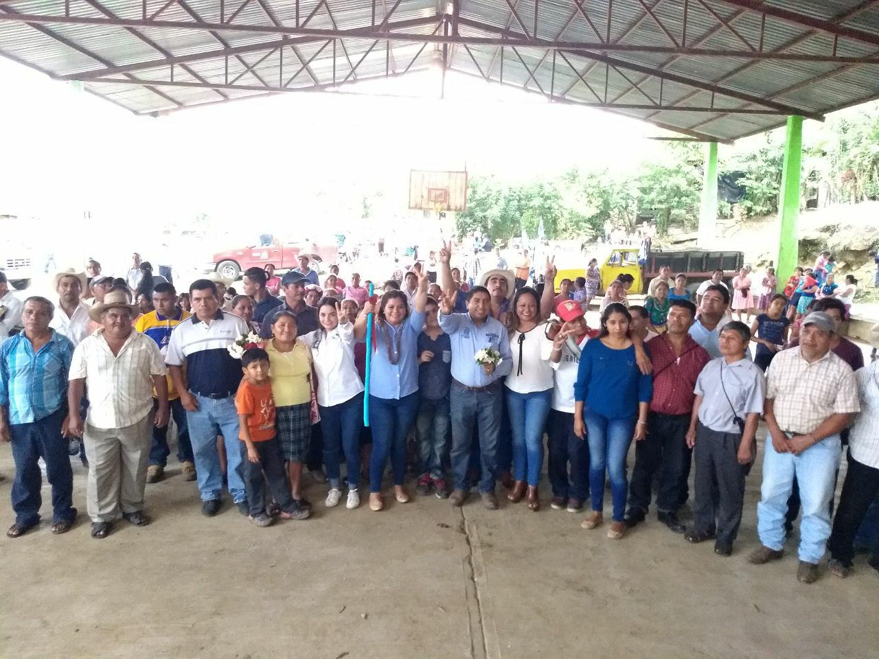 Huehuetlán, SLP.- Respaldados por cientos de habitantes de la comunidad de Tanleab 1, el candidato a la diputación federal por el septimo distrito, Marcelino Rivera Hernández, acompañó a su arranque de campaña, de la candidata a la alcaldía por este municipio, Rebeca Suárez, quienes refrendaron su compromiso de trabajar de la mano para mejorar las condiciones en las que actualmente se encuentran los huehuetlenses.