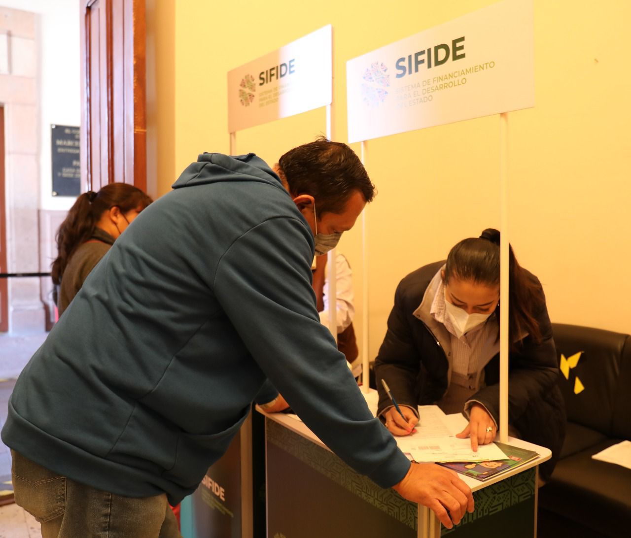 • La ventanilla de atención de Palacio de Gobierno atiende diariamente a cientos de emprendedores y emprendedoras que solicitan un crédito del gobierno estatal para reactivar sus negocios.